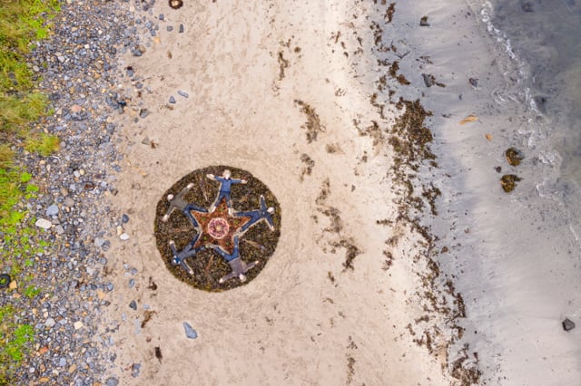 Using skyline and shoreline; five artists, led by Leonora Neary and including Conor Gallagher, Karen Webster, Kari Cahill and Matt Jones, moved along the Sligo coastline creating landscape art pieces each day. Photographer Steve Rogers followed their progress as their location changed. By using google maps, each of the sites could be visited as the week progressed and the works were also shown each day here on the website and social media.